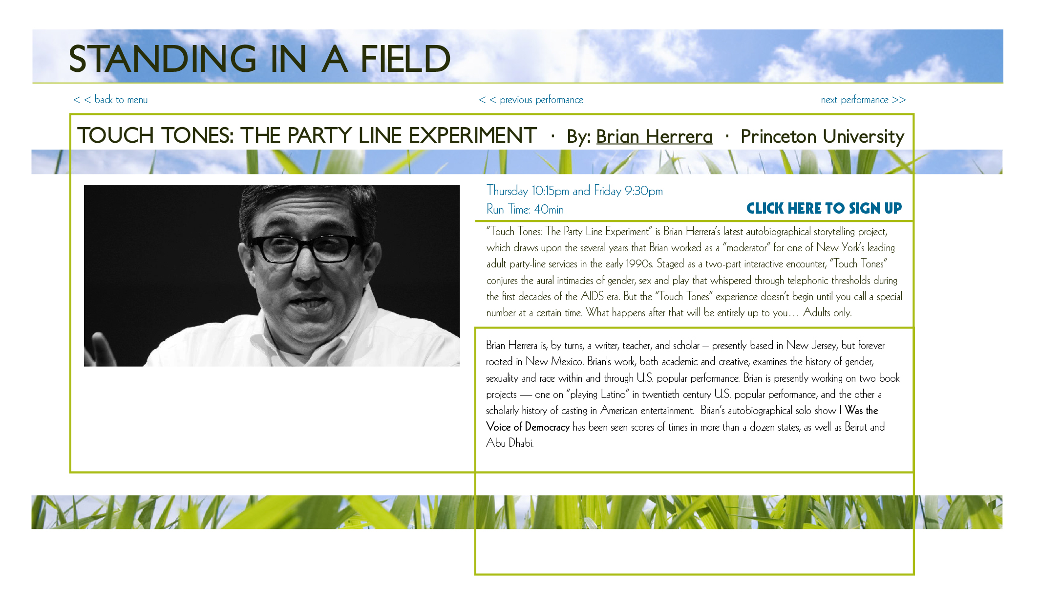 Publicity graphic for Standing in a Field (PerformASTR’13). By Spatula & Barcode.